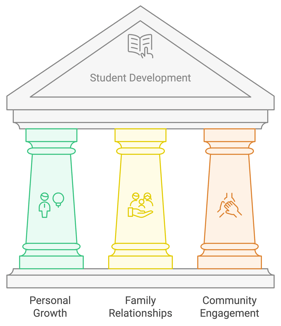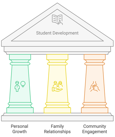 Our goal is to help students grow into community leaders by focusing on their personal growth, emotional understanding, and helping others. We focus on three main areas: Myself, My Family, and My Community.
